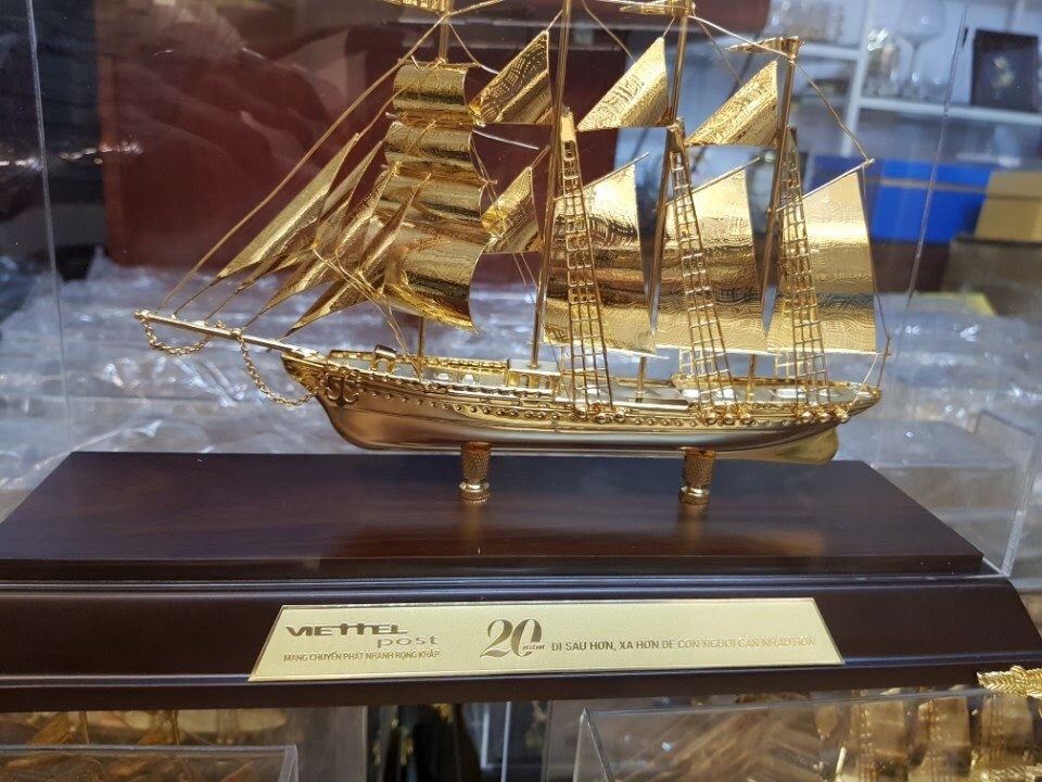 Nhân dịp Kỷ niệm 20 năm thành lập TCT (1997-2017), ACT GOLD vinh dự là đối tác cung cấp 500 biểu trưng thuyền buồm mạ vàng cỡ M cho sự kiện này. Đây là một trong những dịp quan trọng để TCT thể hiện sự tri ân của mình đối với khách hàng, đối tác, đại lý trên khắp cả nước. Món quà như một lời nhắn nhủ Viettel Post sẽ như con thuyền cập bến thành công, thực hiện sứ mệnh cao cả “Đi sâu đi xa để gần con người hơn”. Đồng thời món quà cũng là một lời chúc người nhận sẽ luôn được “Thuận buồm xuôi gió”.
