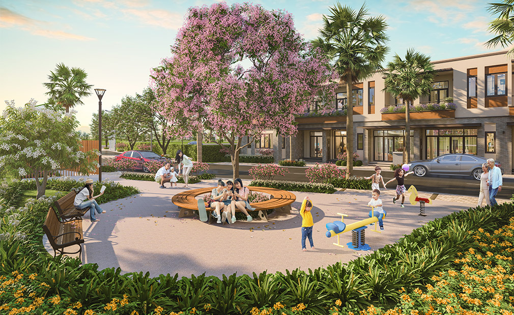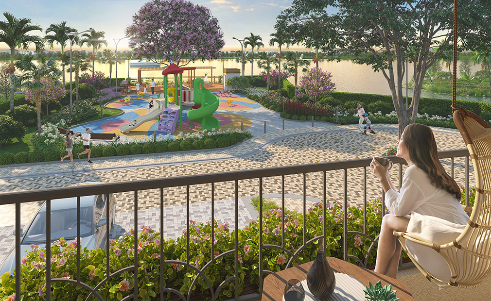 Bên dòng sông Vàm Cỏ Tây hiền hoà, êm đềm sóng nước phương Nam; những mái nhà phố thấp thoáng ẩn hiện giữa khu vườn Nhật xanh mướt. Đâu đây ngân nga tiếng cười nói, con trẻ hồn nhiên chơi đùa, người lớn gặp chào nhau cùng đôi lời thăm hỏi. Con đường rợp bóng cây dẫn lối trở về nhà, sau ô cửa với các tiện ích thông minh chỉ “một nút chạm” đã mở ra không gian sống với yêu thương và hạnh phúc luôn đong đầy.