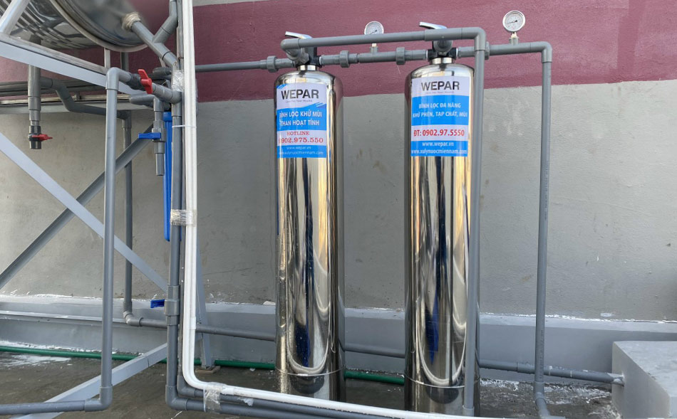 Sử dụng 2 bồn chứa đầu nguồn và sau lọc